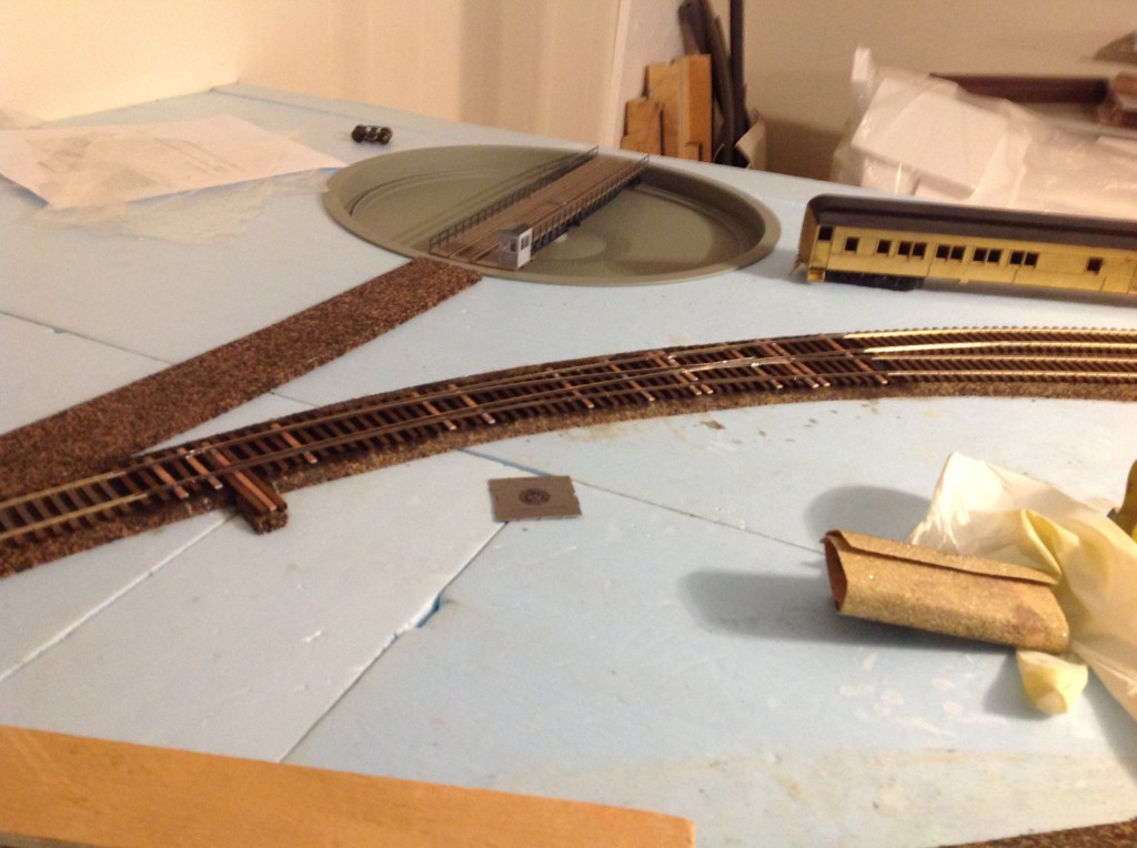 Shown here is a scratch built curved turnout using Fast Tracks techniques but not their fixture. I believe that the outside radius is 42″ and the inside is 39″. This depicts before the turnout control was added. I am not sure about anyone else but I have to tweak my turnouts over and over until everything runs through them. I hear there are people who can actually build them so well that they just plop them in place and everything works famously. Unfortunately, I am not one of those people. Then again, they may not be using P64 wheelsets. Why do I use P64? One, they look really, really great and two does the word masochist have any meaning for you? At any rate, that is what I chose when I first got into S scale in 2000. You would think that after 19 years in S, I would know better. The combine you see is the first pilot model for the CNR combine. It is 2 scale feet too long and does have P64 wheels. The subsequent kit was corrected. Since I don’t really need another combine, it most likely will never be completed and remain a track tester. If it can go through the track work, anything can.